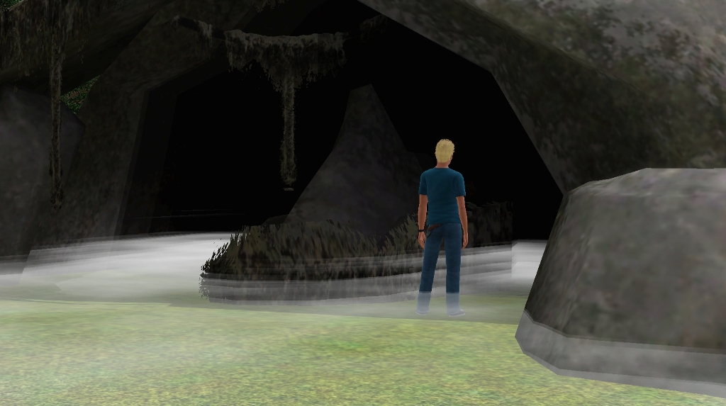 On the back side of the rocks there was a large mysterious looking cave. He was almost sure nobody would find the robbed stuff if he hid it in there.