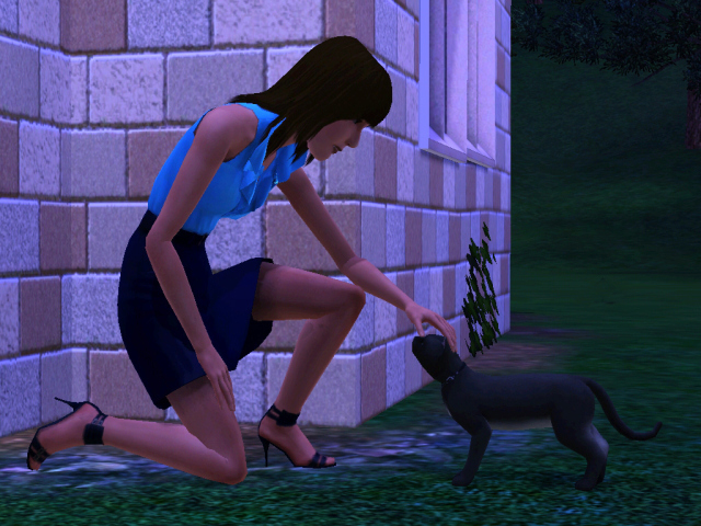 She liked dogs better, but that didn’t mean she disliked cats. So, when she heard the cat, she went outside and petted him on the head.