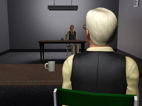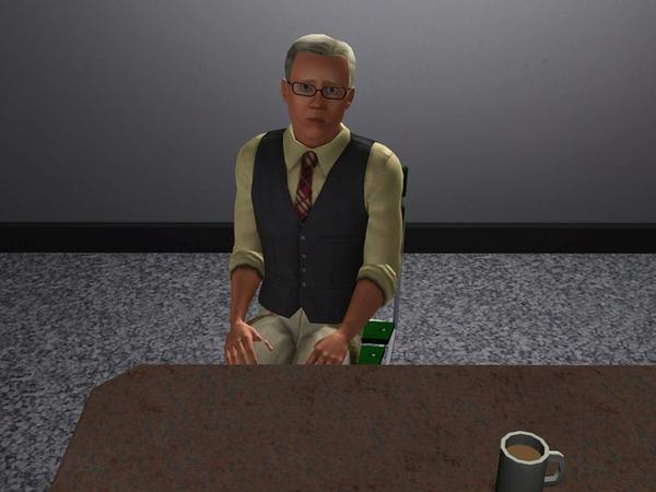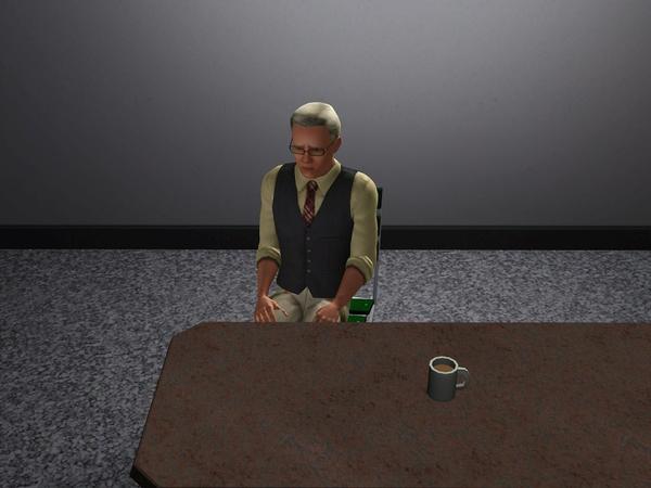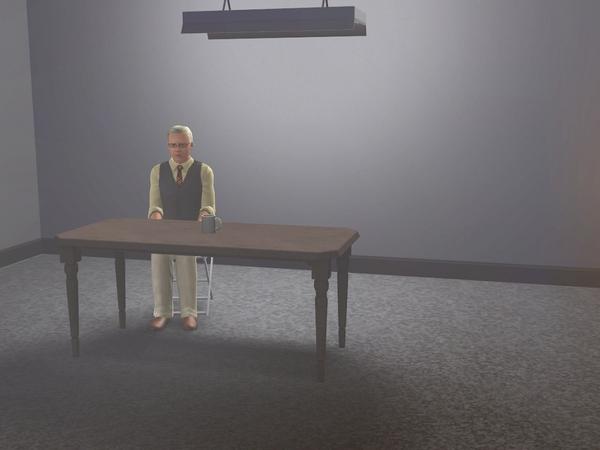 I stare at the mirror in front of me. It shows me the room in its stark blandness: the gray paint, the battered table, the florescent lighting that lights my face to paleness and hides my eyes in darkness. I need a shave. I need some sleep.