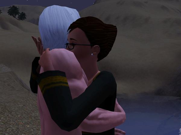 He touched her face. Then her arms. The glass nearly fell from her hand.