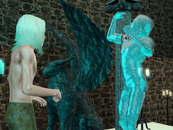 The room ahead was very cold. There were was an army of half-finished sculptures on display, many of which were of ice. They, and the stone statues that lay just ahead, watched her with hollow stares. Without meaning to, she stopped in front of one and began to trace a resemblance in the face. That emotionless, blank look.