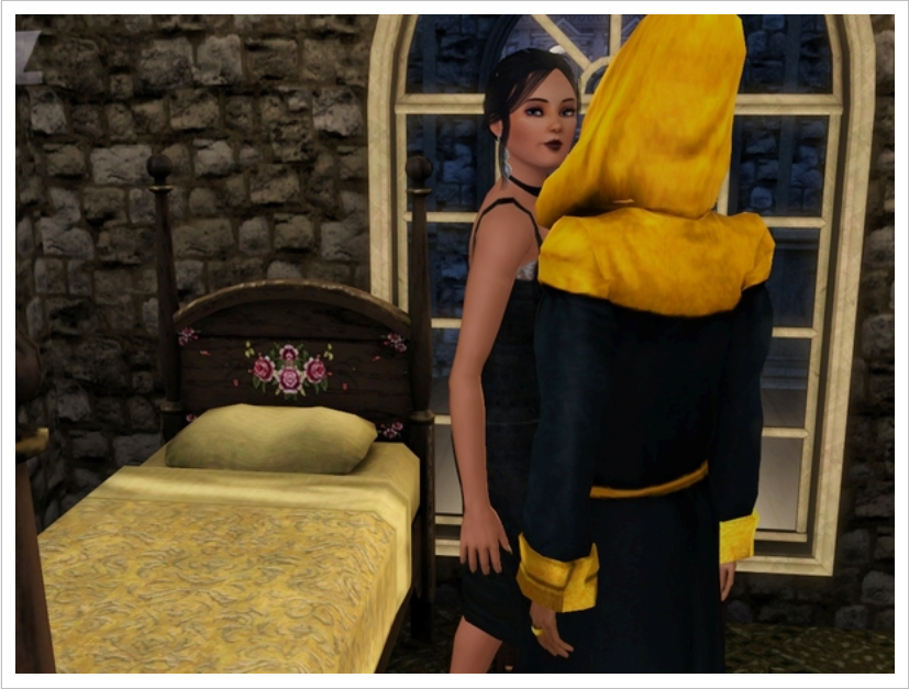 Entering the room in which she was. He found her sleeping. A wine chalice set beside her bed. Sleeping potion perhaps.