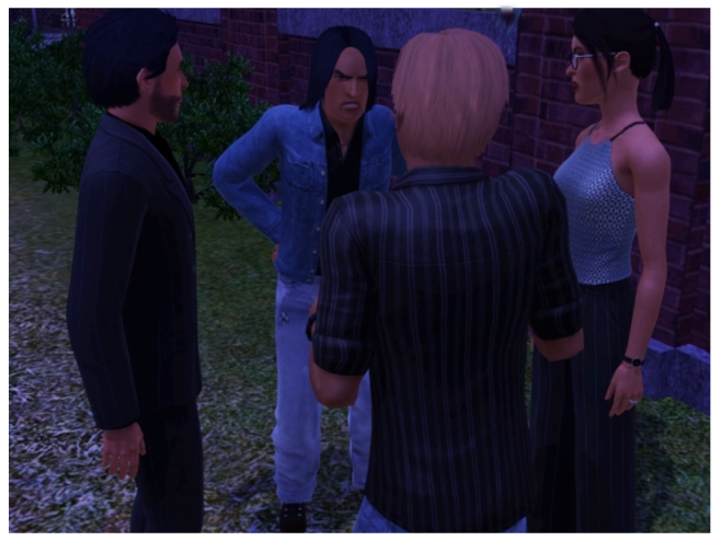 “Sean! Fred! Look what I found here!” We were three…. Rex was just by himself. We cornered him and Nita started right away with questions about Barb’s disappearance.