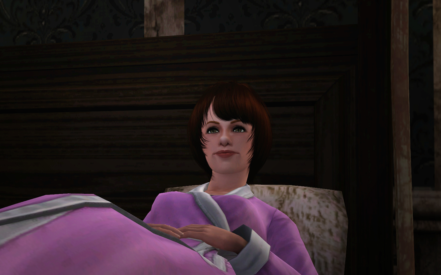 When she woke up she stayed in bed daydreaming a bit. She thought it would be a good idea to remove all the creepy paintings in the house. She wondered where she could store them all, because there were so many of them if she remembered well.