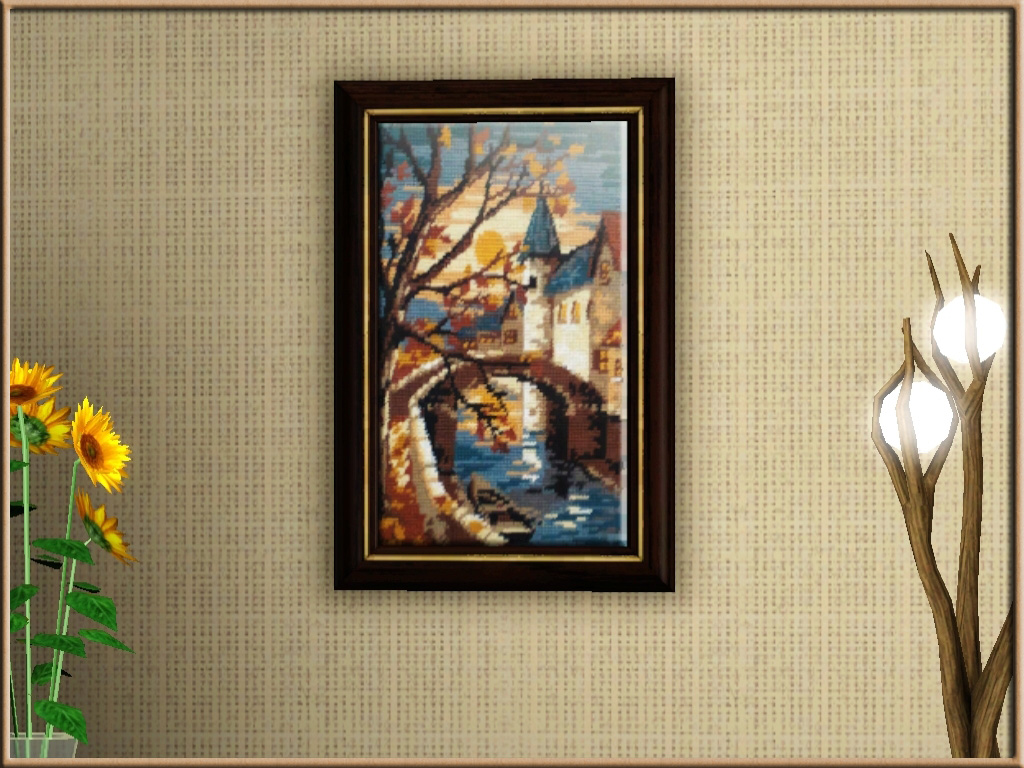 This canvas was made by me (petit point) You can see it represents an arched bridge in autumn.