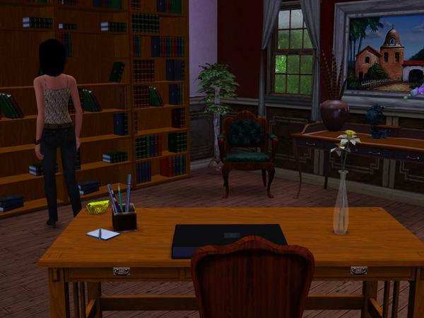 The 2nd floor of the house contained an office-library. It was beautiful, oh I so love books. The smell of them. The old binders with the worn out pages of being turned over and over again. It was enough to make me forget about what happened downstairs. I continued to roam about.